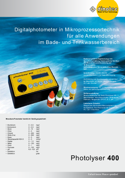 Die Photolyser von dinotec gehören zum unerlässlichen Handwerkszeug für jeden Profi. Je nach Modell können Sie zwischen 7 – 25 Parameter analysieren.