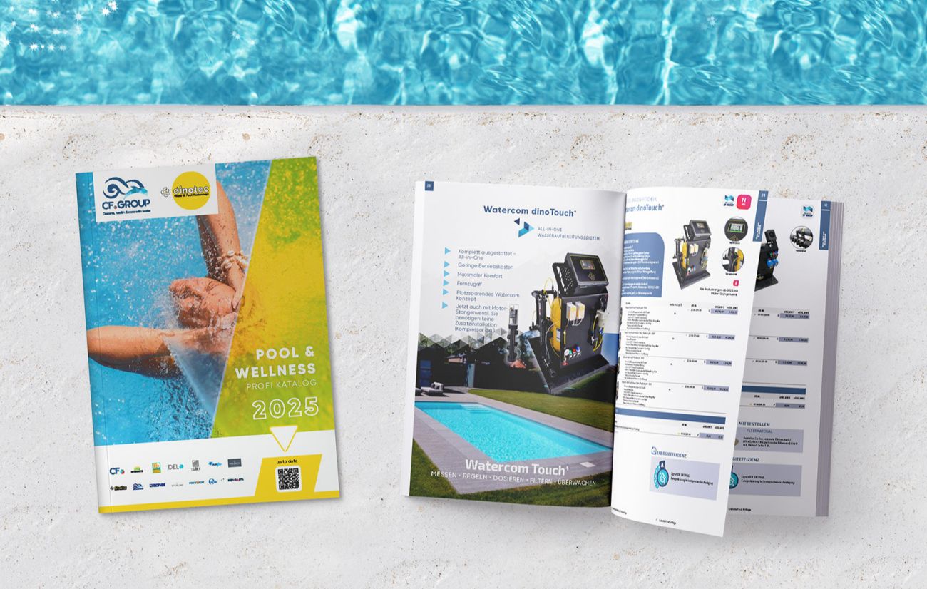 Es ist so weit, der dinotec Katalog 2025 für Sie zum Download. 360 Seiten geballte "Pool-Power"!